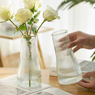 玻璃花瓶透明直筒客厅插花摆件高级感水养鲜花水培绿植简约网红大