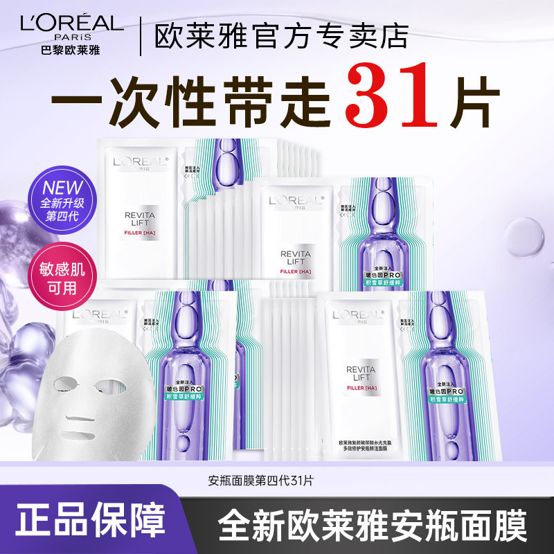 欧莱雅安瓶面膜补水积雪草B5修护舒缓泛红抗皱紧致护肤官方正品