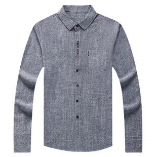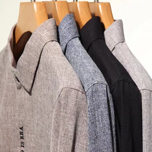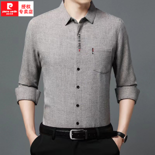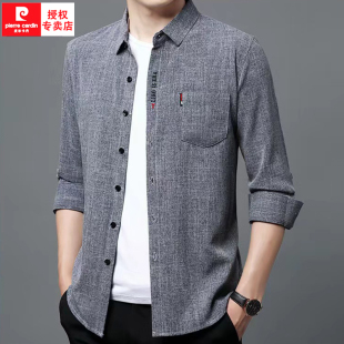 皮尔卡丹棉麻长袖 男高级感春秋真口袋宽松休闲中年亚麻衬衣潮 衬衫