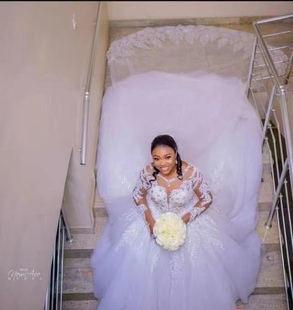纱在逃公主迎宾纱法式 高级质感重工仪式 主纱 长袖 婚纱新娘2025新款