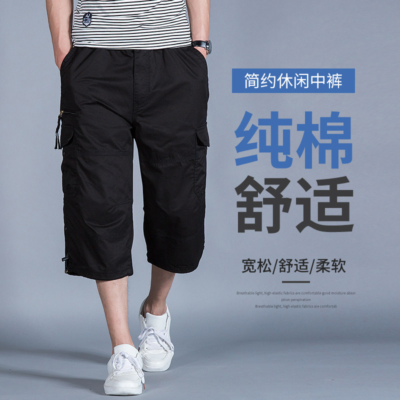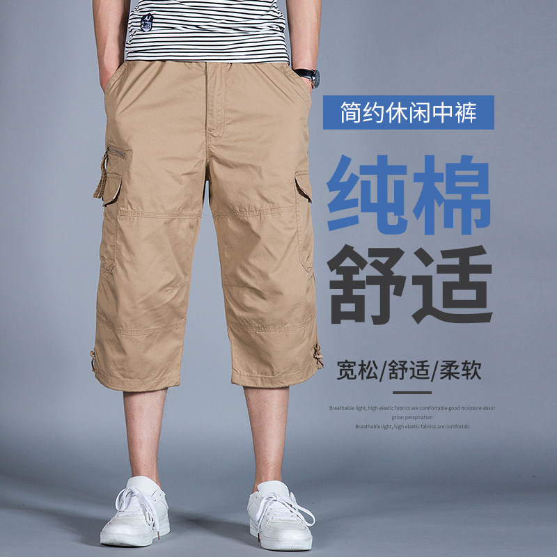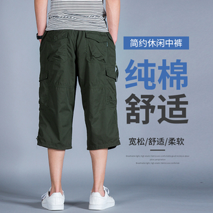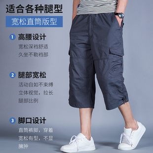 薄款 外穿男士 七分裤 工装 加肥加大过膝男裤 男夏季 纯棉休闲中裤 短裤