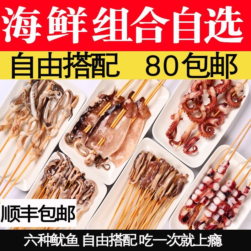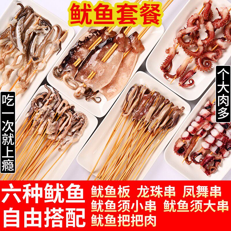 鱿鱼板凤舞串须龙珠串嘴海鲜烧烤食材半成品组合 铁板鱿鱼自选