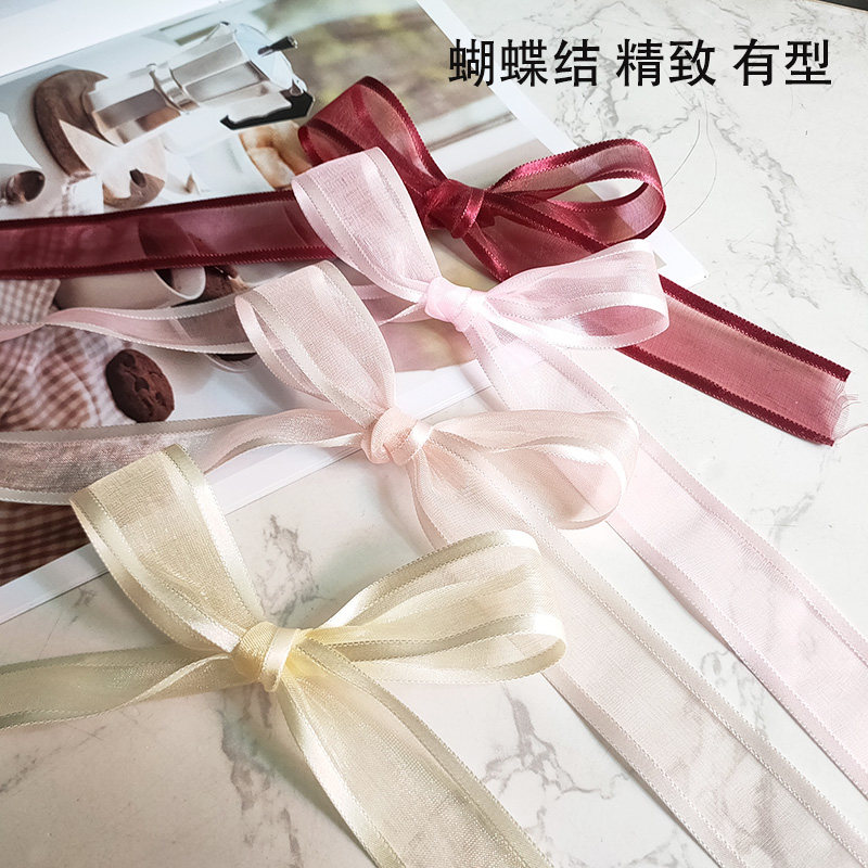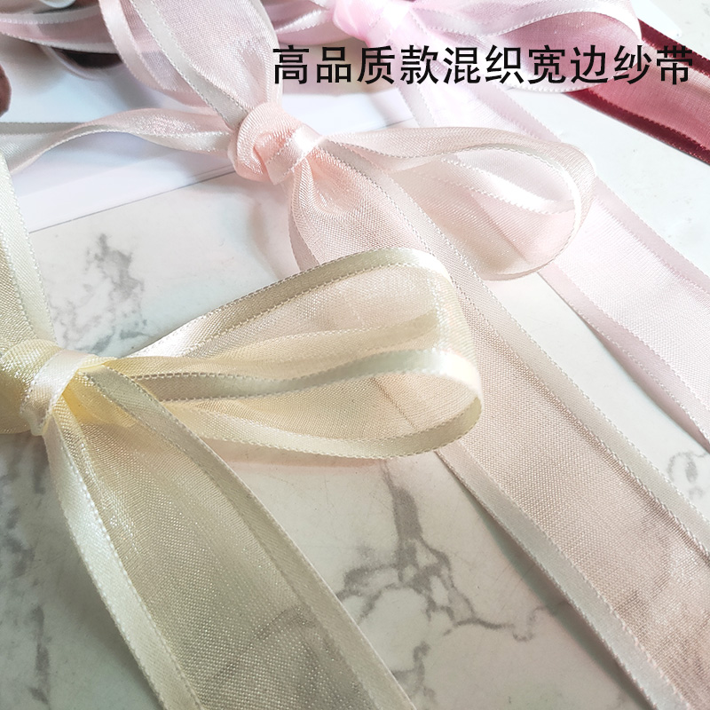 2.5cm高级感奶白色纱带 手工发夹DIY蝴蝶结材料 鲜花礼盒缎带丝带