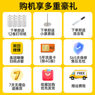 美团外卖打印机全自动接单蓝牙4GWIFI扫码 点餐机餐饮收银58热敏小票机饿了么京东外卖淘宝闪购真人语音打单机