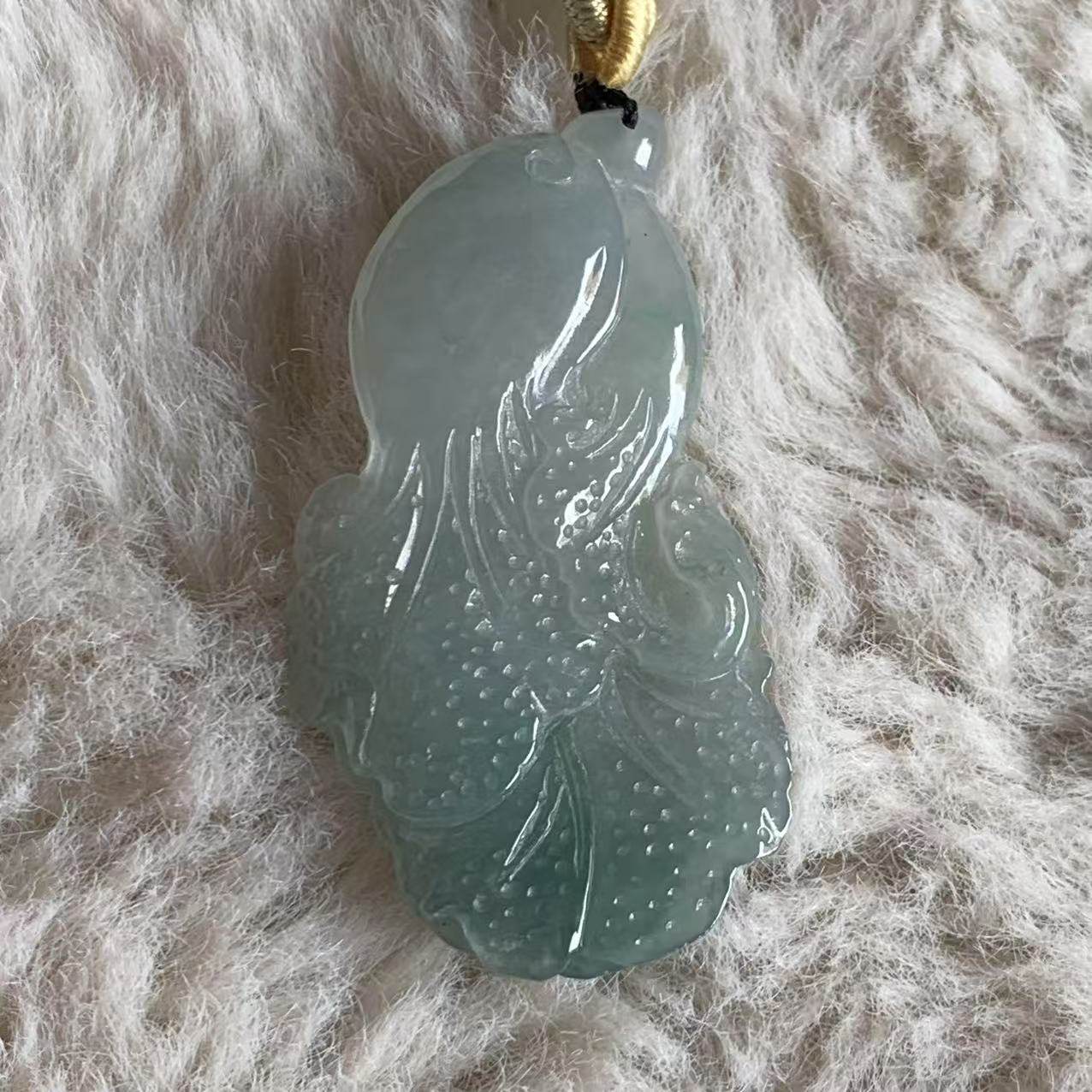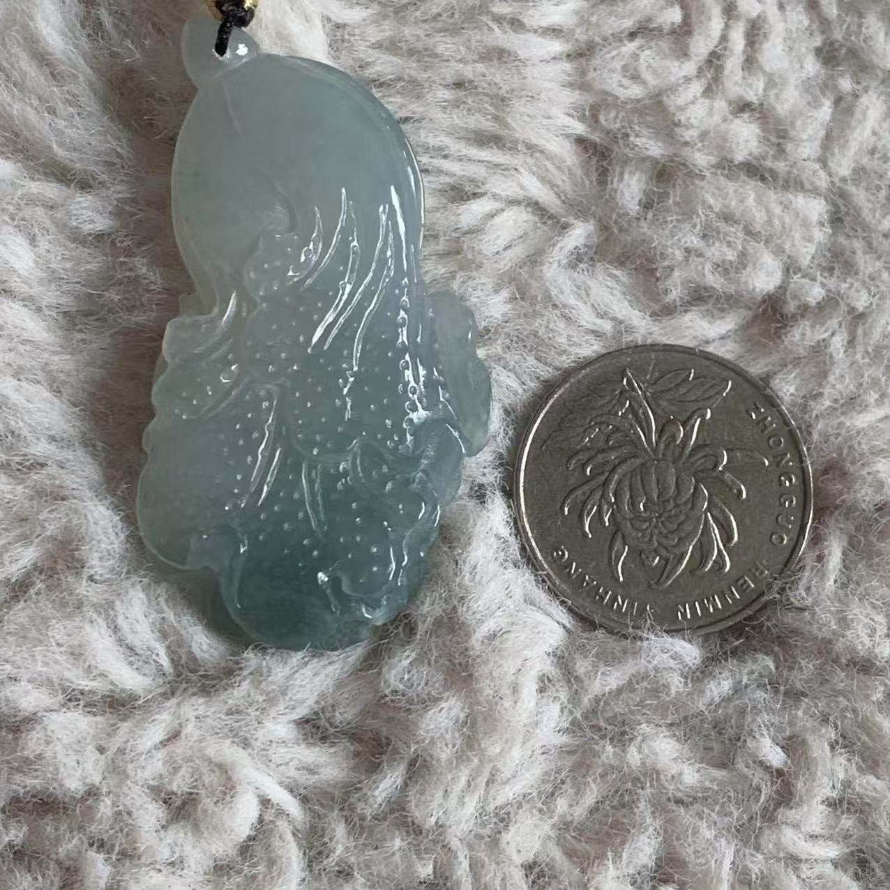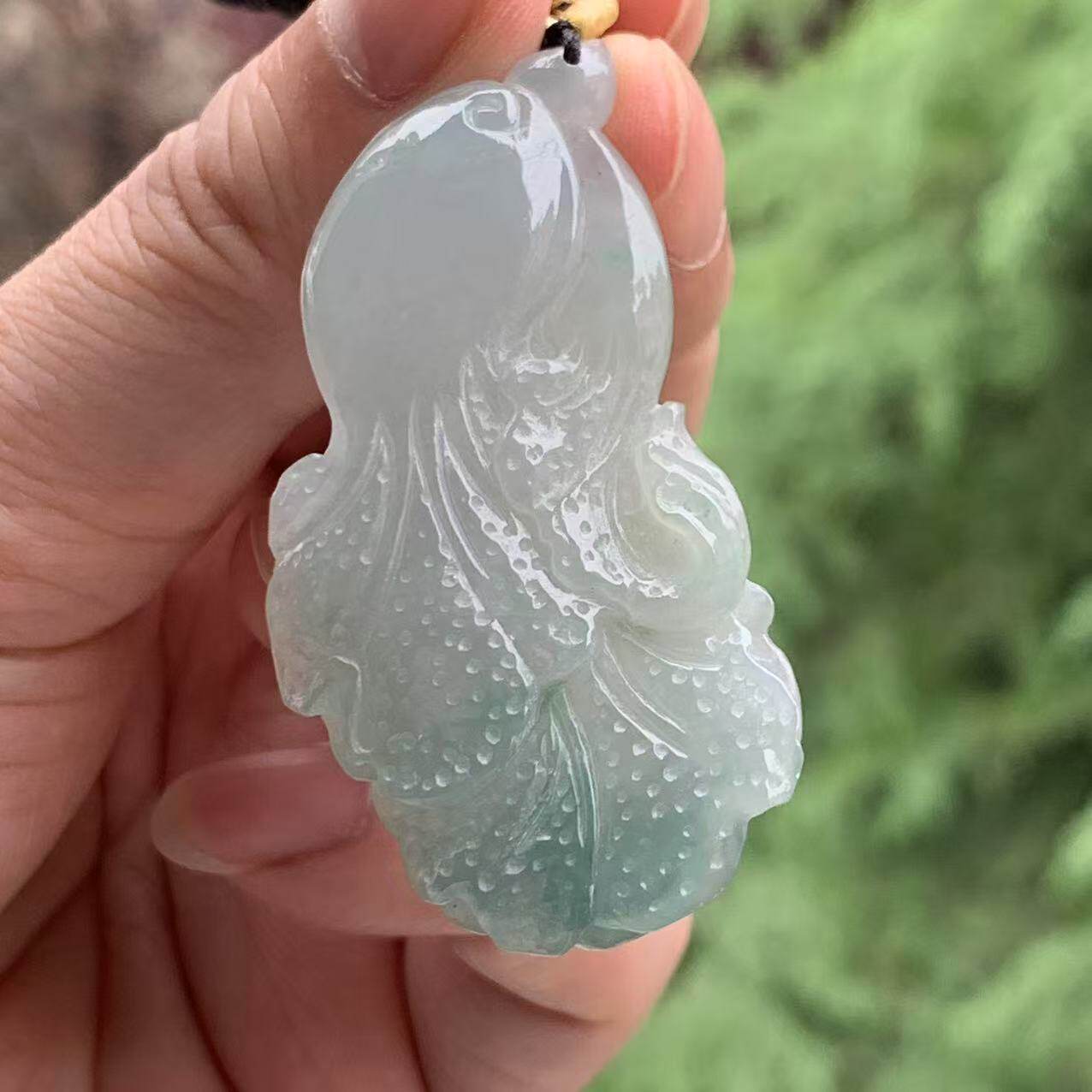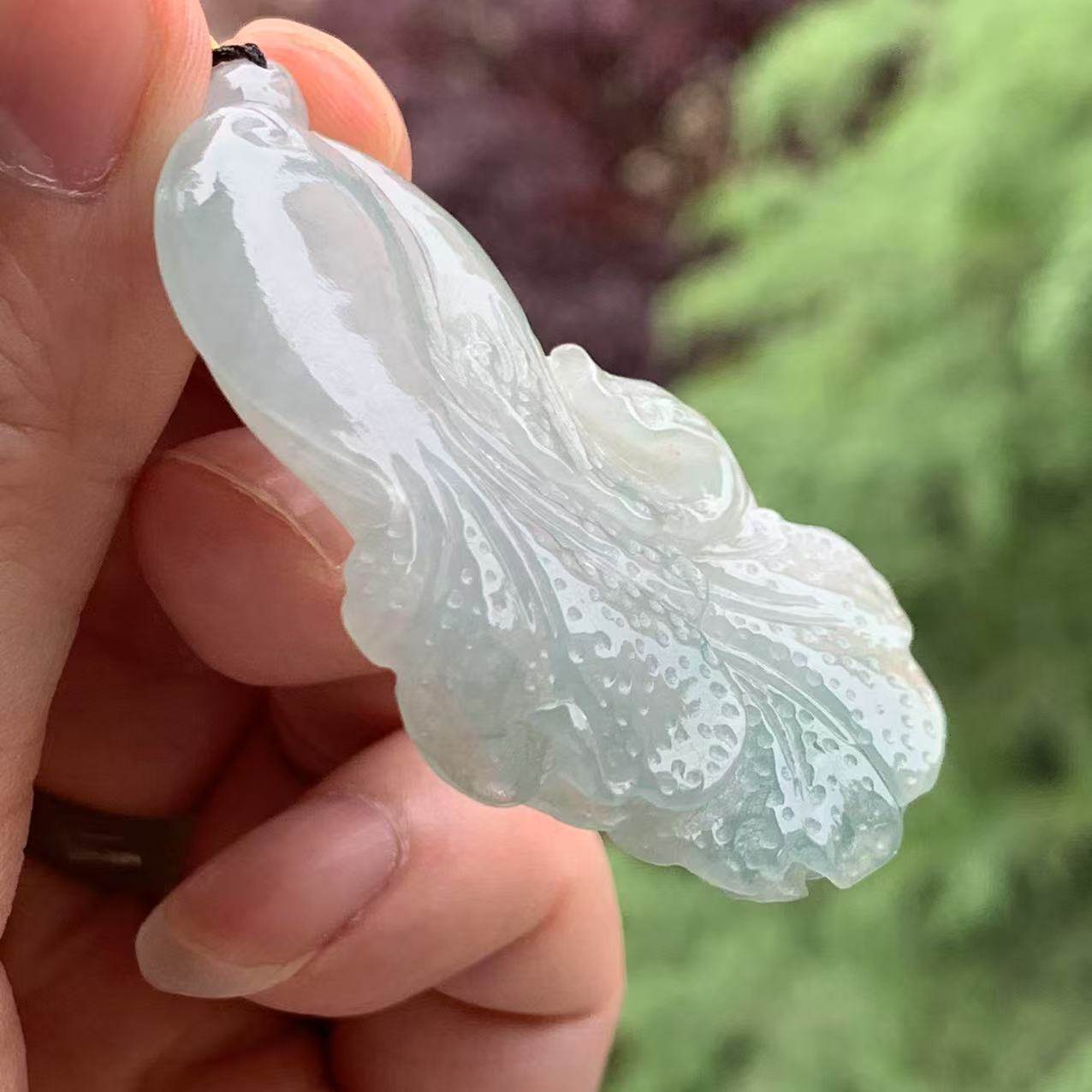 缅甸天然A货翡翠吊坠冰起胶淡蓝色白菜50 7.3mm一物一证 28.7