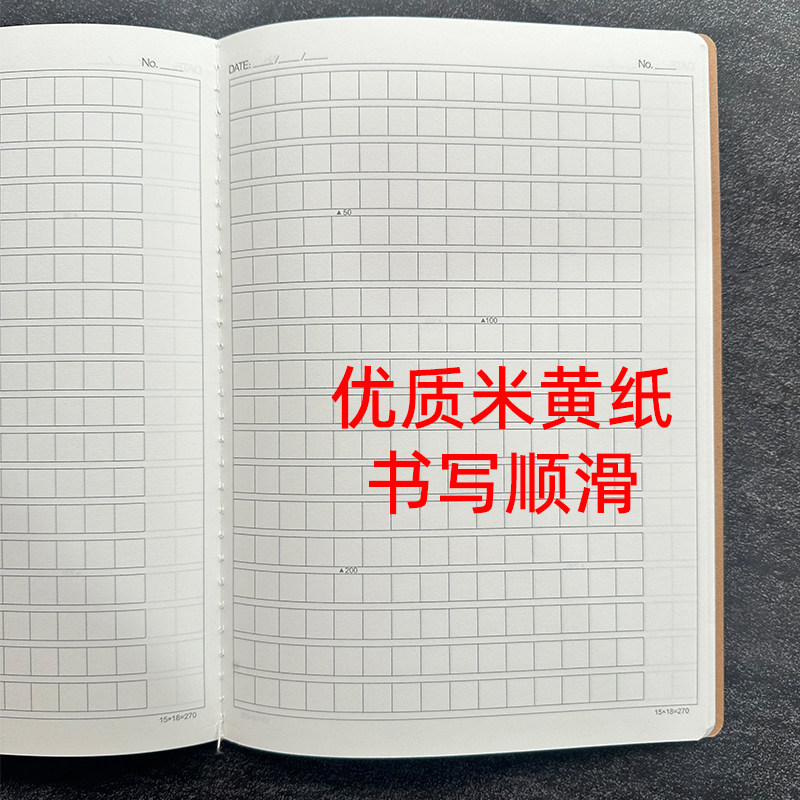 咪小豆16K牛皮纸封面缝线作文本作业本1CM大格子270格加厚纸