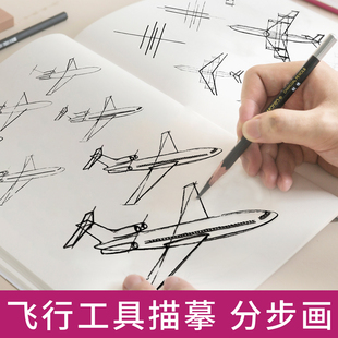手绘分步画描摹本飞行工具线稿临摹描线控笔绘画本画画儿童练习册线描线条画册素材手绘初学者入门教材程黑白创意美术素描速写插画