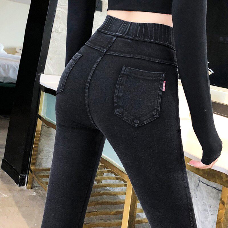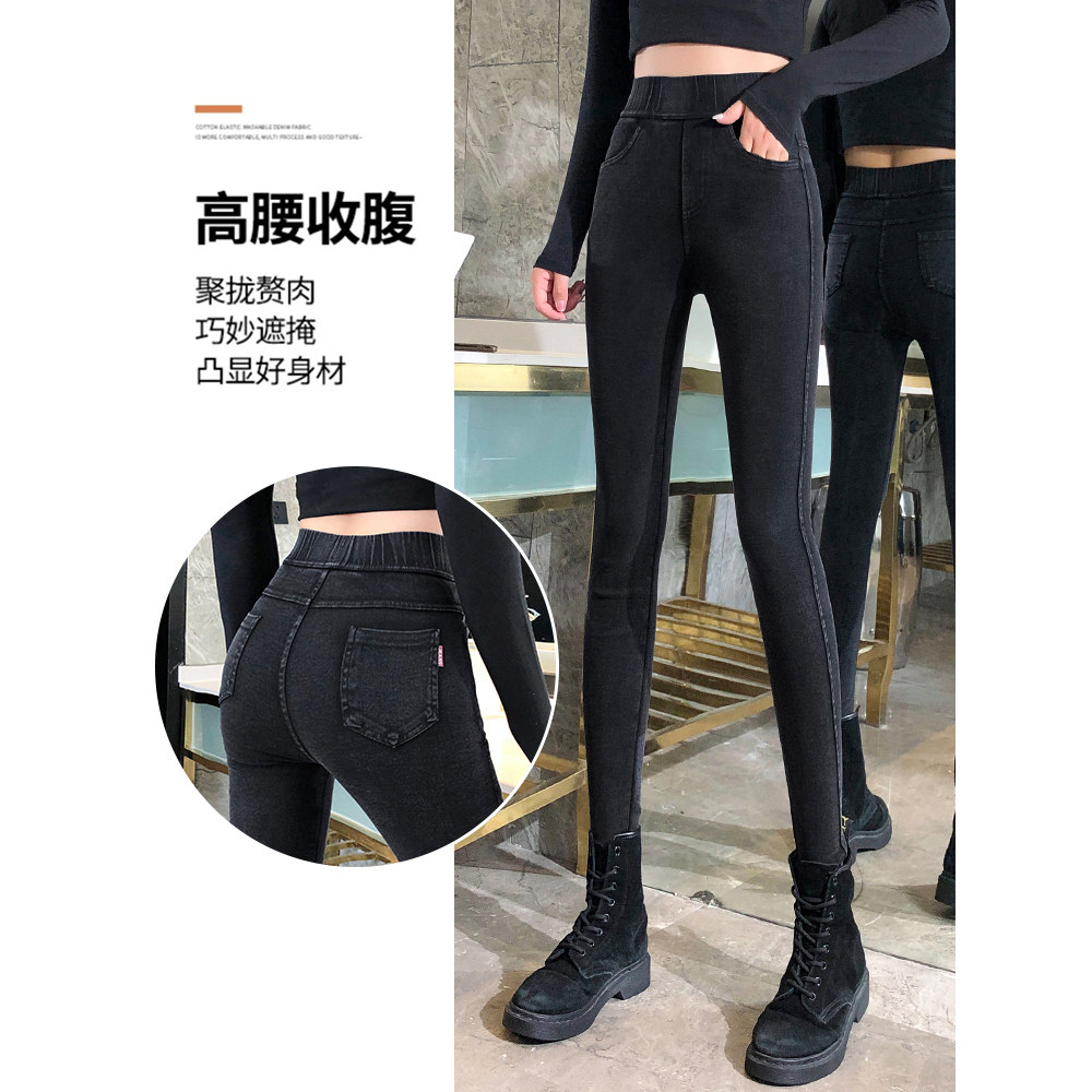 高腰弹力紧身小脚铅笔裤 2026新款 子 女外穿春夏薄款 黑色牛仔打底裤