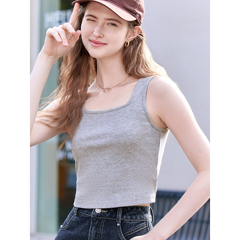 ubras带杯棉感吊带背心女外穿无缝一体织挂脖上衣女老年人背心