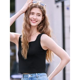 T恤上衣 无袖 白色小吊带背心女夏外穿纯棉工字大码 黑色内搭打底衫