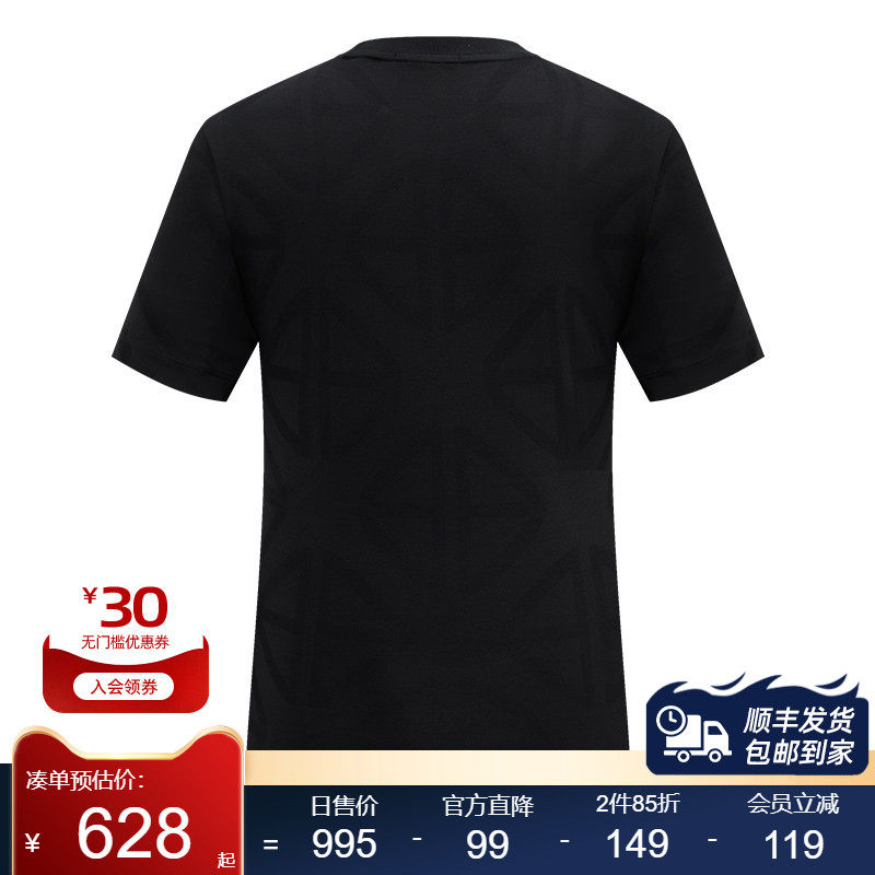LR380E11B T恤净色休闲打底衫 堡尼春夏新品 圆领提花桑蚕丝混纺短袖
