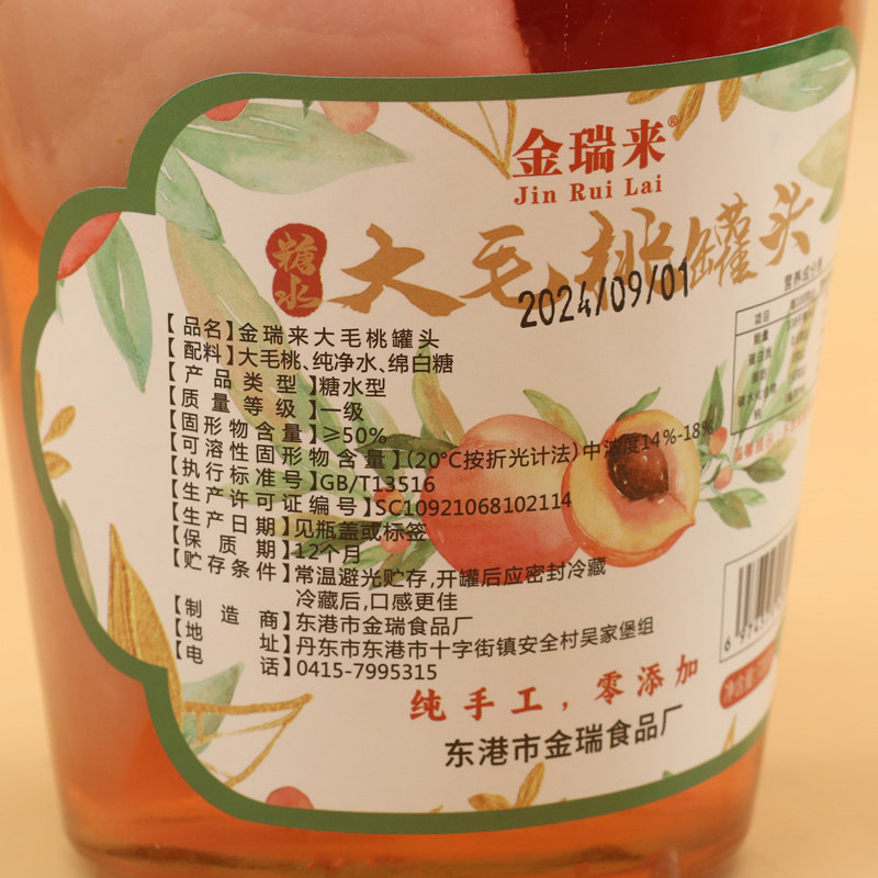 金瑞来 饰甜点烘焙瓶装 丹东黑沟毛桃罐头黄桃水蜜桃装 饰水果蛋糕装