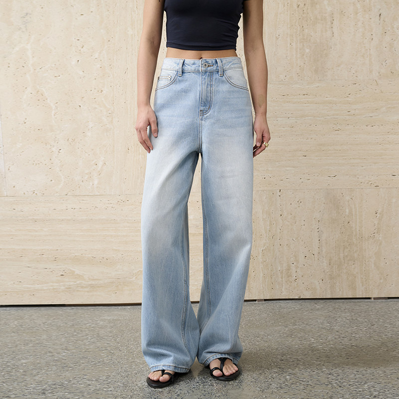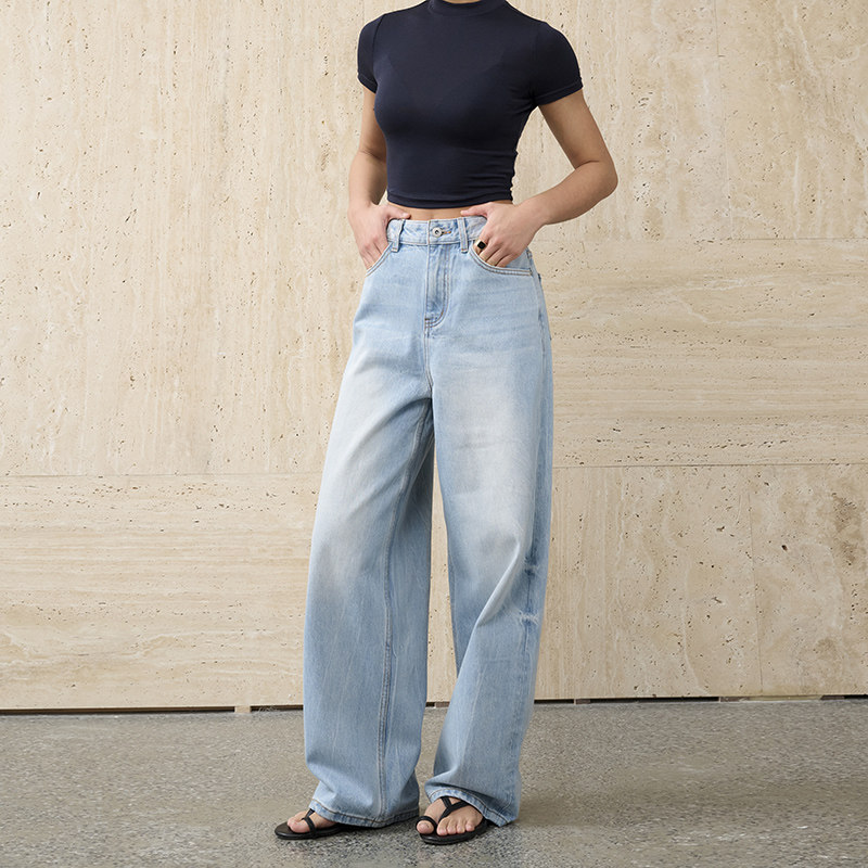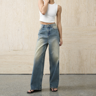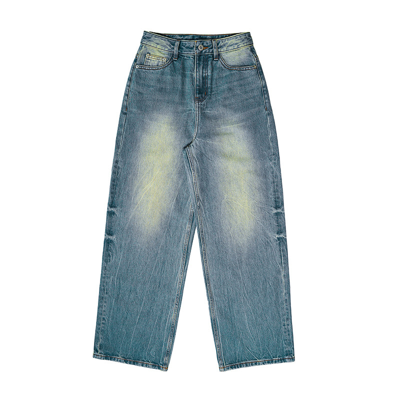 GUS松弛感宽松直筒阔腿牛仔裤 高腰土耳其进口面料做旧复古冰裂纹