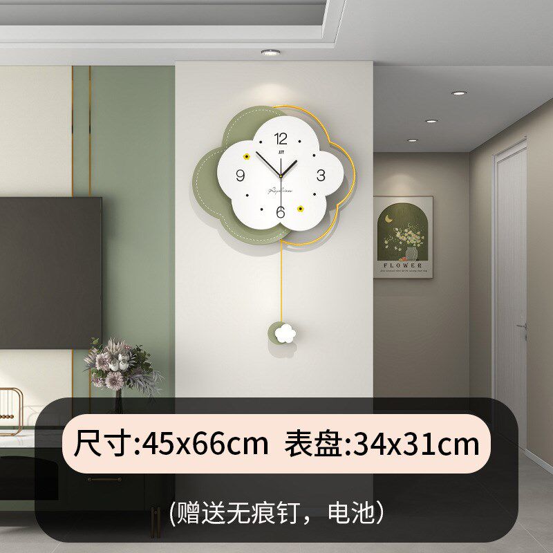 创意时钟奶油风家用装 饰餐厅简约挂钟免打孔钟表客厅高级感表挂墙