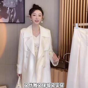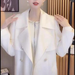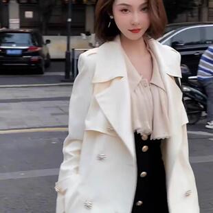 法式 风衣外套女春秋乳白色系带收腰显瘦名媛气质大衣 高级感中长款