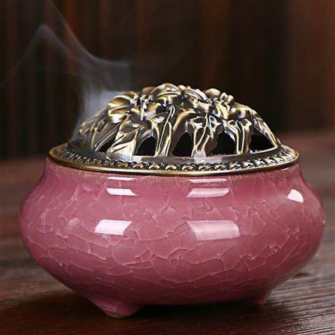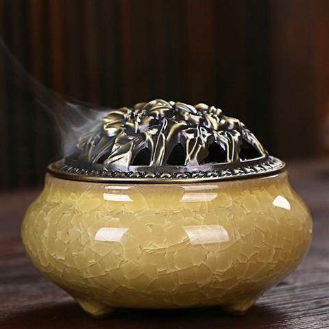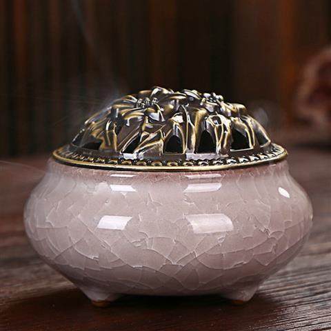 七彩冰裂香薰炉家用盘香窑变紫砂佛具仿古驱蚊炉香除臭古铜盖
