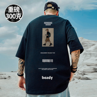 加肥加大码 国潮牌宽松T恤胖子短袖 男装 夏季 2025新款 半袖 重磅美式