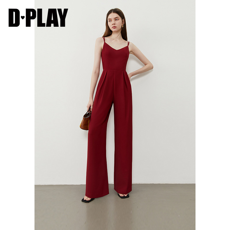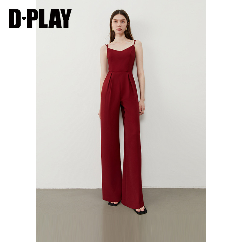 吊带露肩连衣裤 DPLAY 女2026年春夏新款 红色连体裤 度假系列