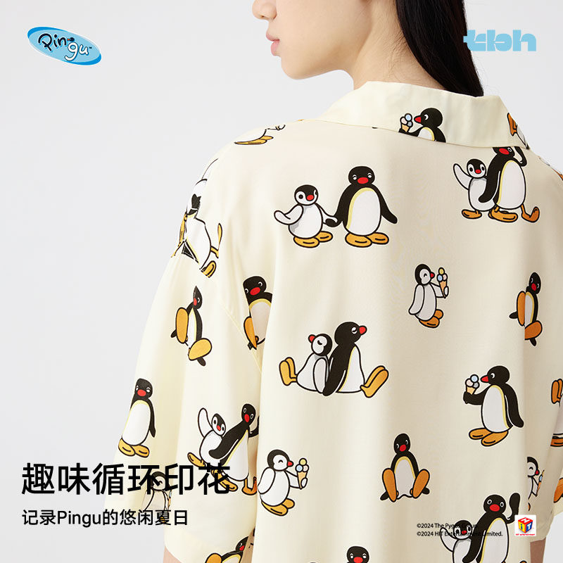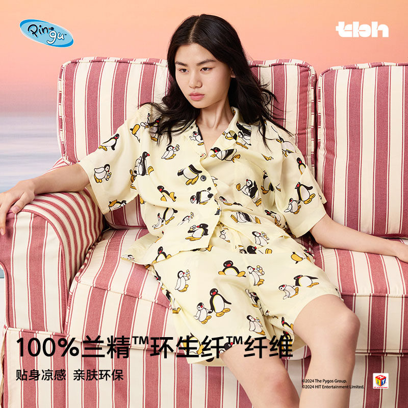 凉感睡衣女 夏季 tbh野兽派家居Pingu合作系列环生纤短款 家居服套装