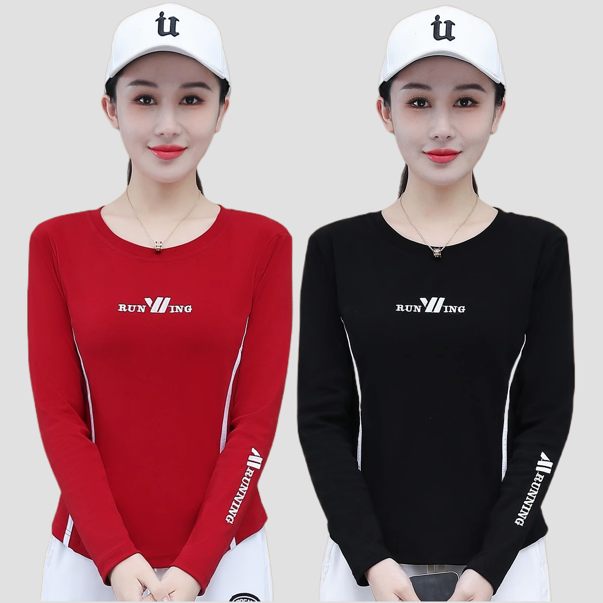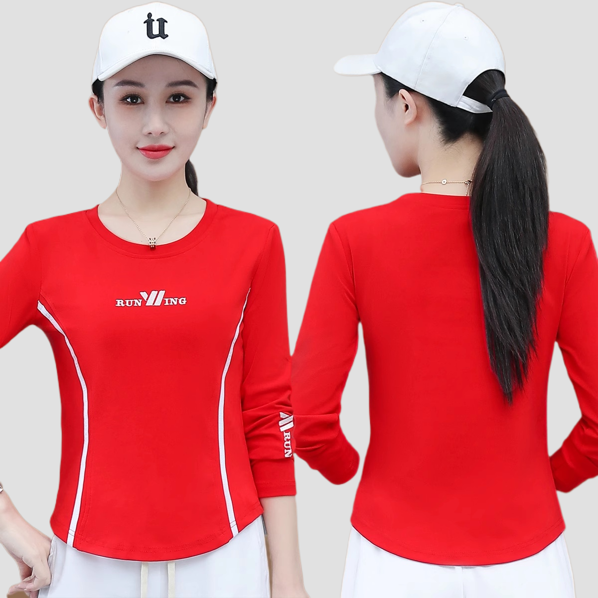 字母休闲健身操跳操服上衣大码 广场舞服装 T恤时尚 运动长袖 女 秋季