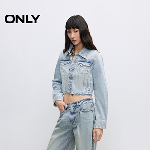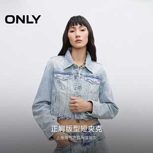 单排扣翻领牛仔外套女 复古水洗工艺正肩长袖 ONLY2026春季 新款