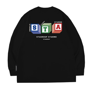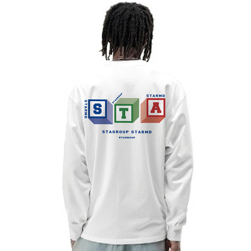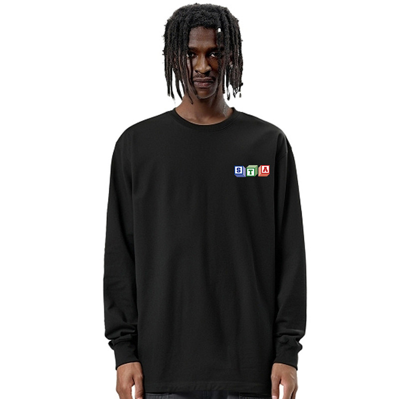 潮牌体恤打底衫 嘻哈基础款 T恤男潮流街头美式 STA3D正方形立体长袖