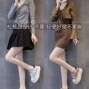 女加绒厚底增高情侣休闲运动鞋 骆驼银月老爹鞋 子 迪丽热巴同款