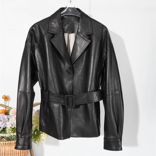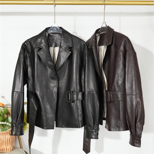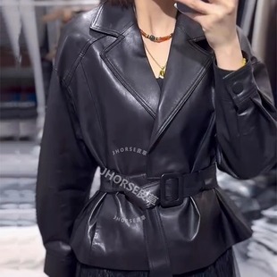 收腰皮衣翻领夹克外套女 NanaJacqueline短款 迪丽热巴秦岚同款