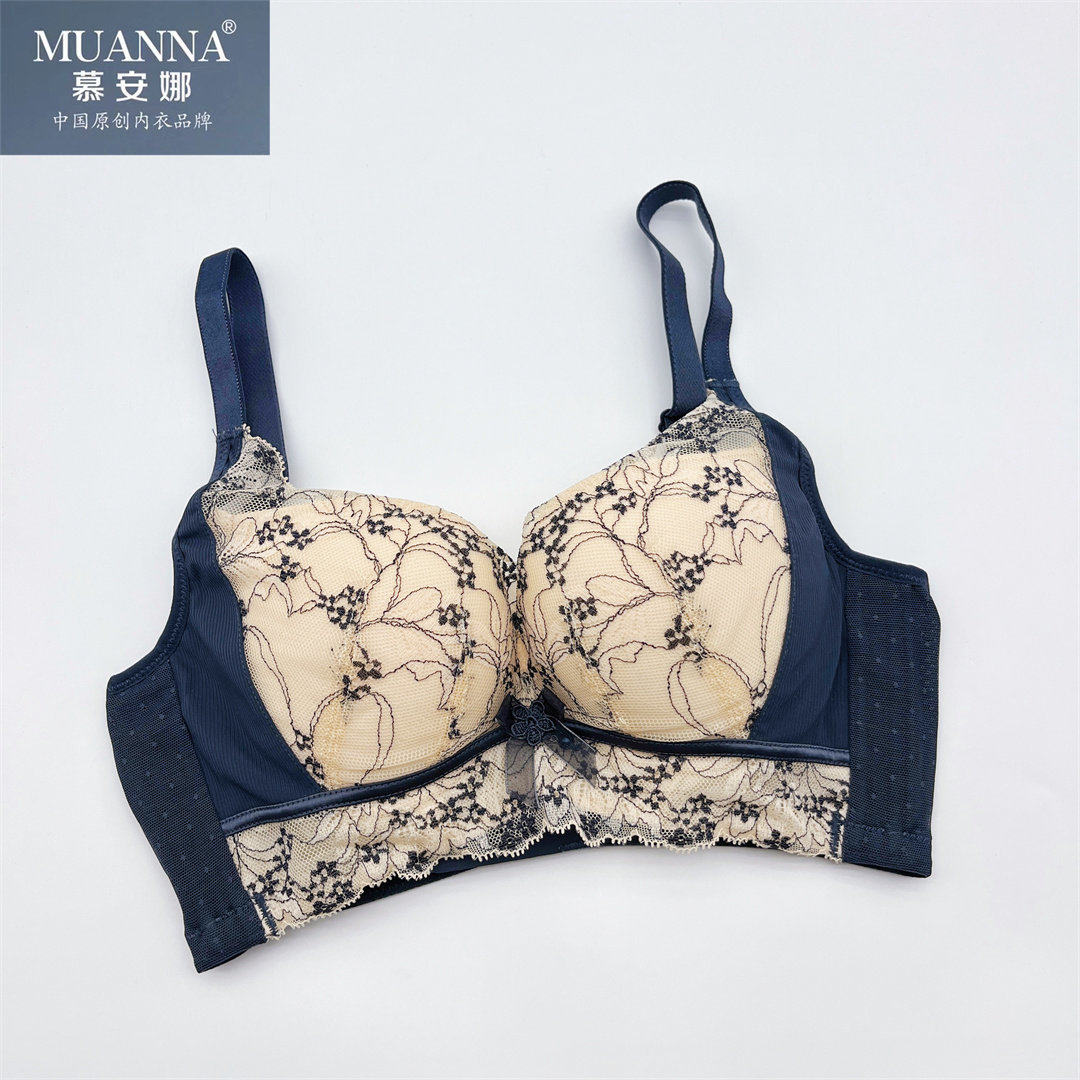 慕安娜聚龙无钢圈文胸性感蕾丝8401AB杯防下垂小胸显大中厚杯内衣