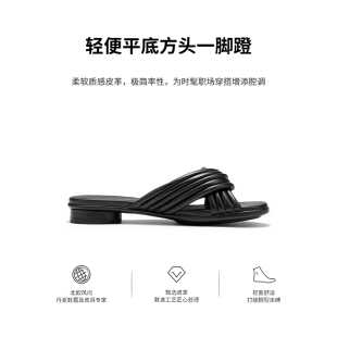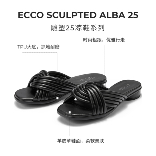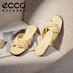 雕塑233813 春夏交叉带低跟低跟软底一字拖 ECCO爱步女鞋 拖鞋