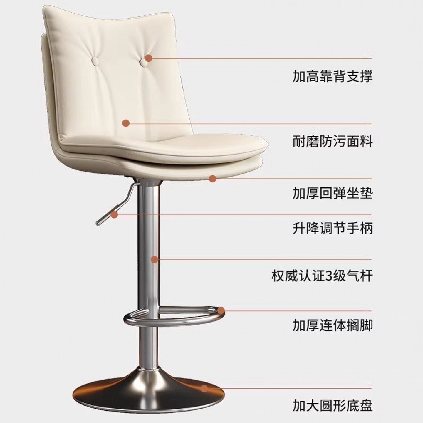 吧台椅现代简约转椅美容院升降凳子家用高脚凳靠背酒吧椅旋转圆凳