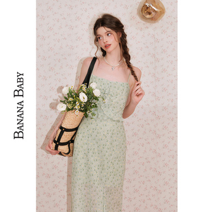 BANANA 度假风荷叶边碎花吊带连衣裙女收腰长裙 BABY2025年新款