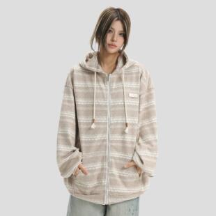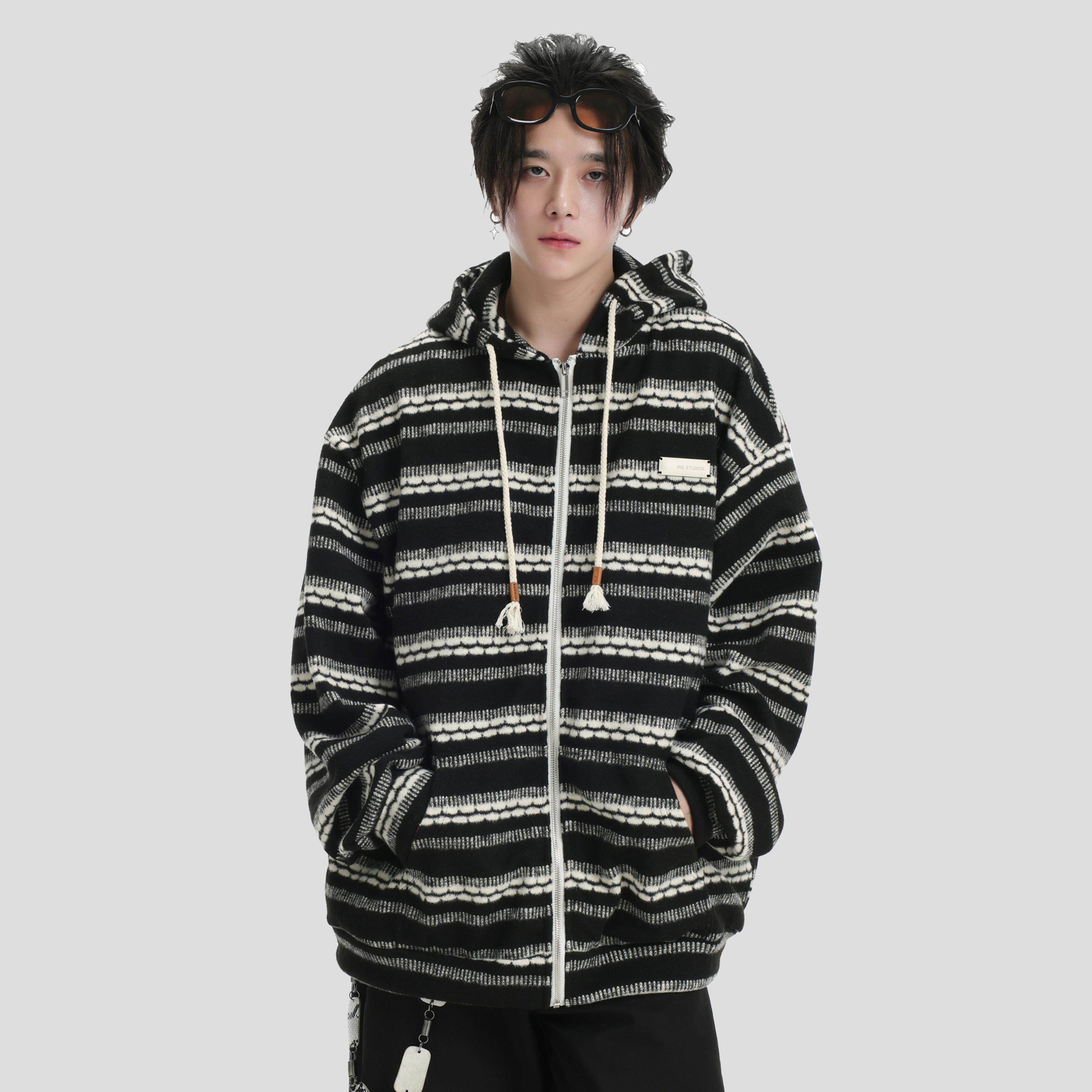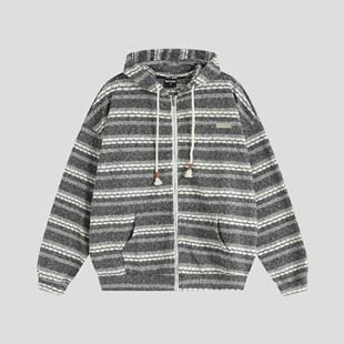 卫衣宽松拉链外套 磨毛编织条纹针织衫 INSstudios 国潮牌情侣美式