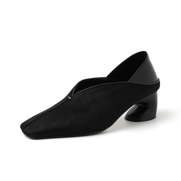异形跟高跟鞋 通勤方头一脚蹬小皮鞋 女 法式 时髦洋气豹纹V口奶奶鞋