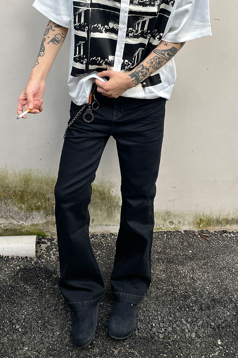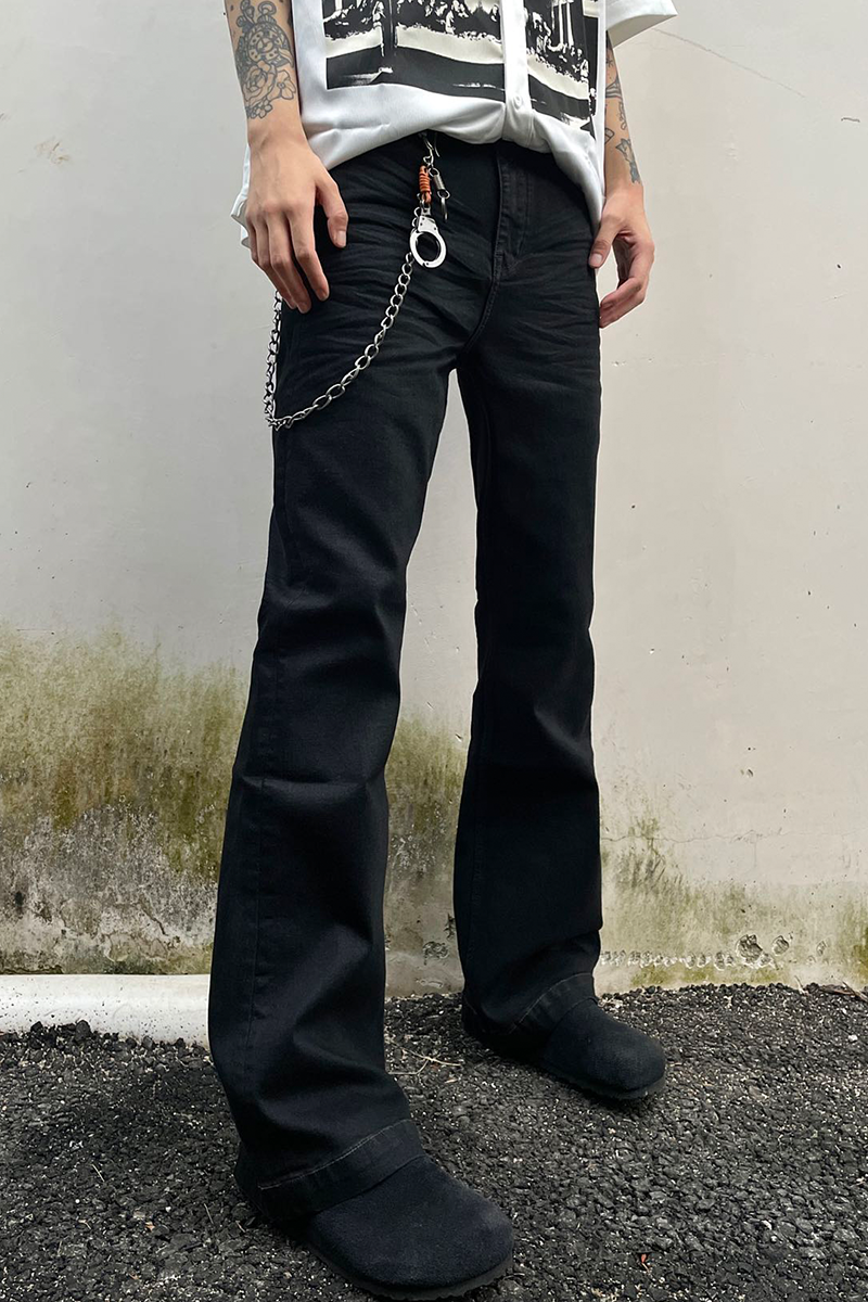 弹力纯黑质感褶皱猫须微喇中高腰牛仔长裤 修身 春秋新款 SUNINWAVE