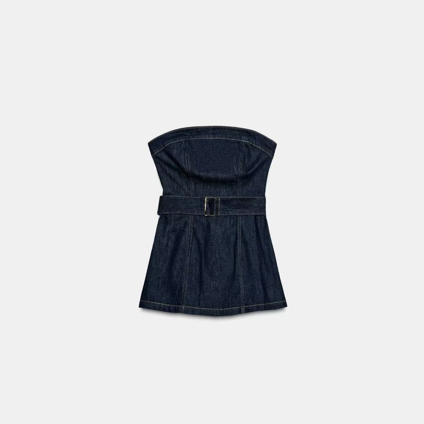 上衣7484158 长款 ZA外贸出口女装 7484161辣妹风配腰带牛仔裹胸式