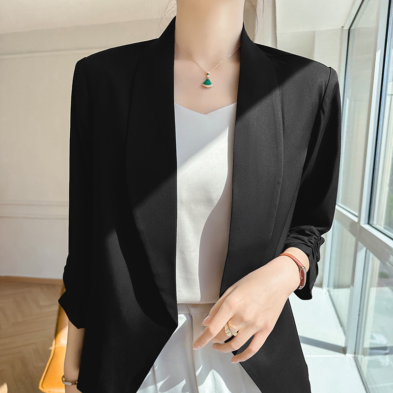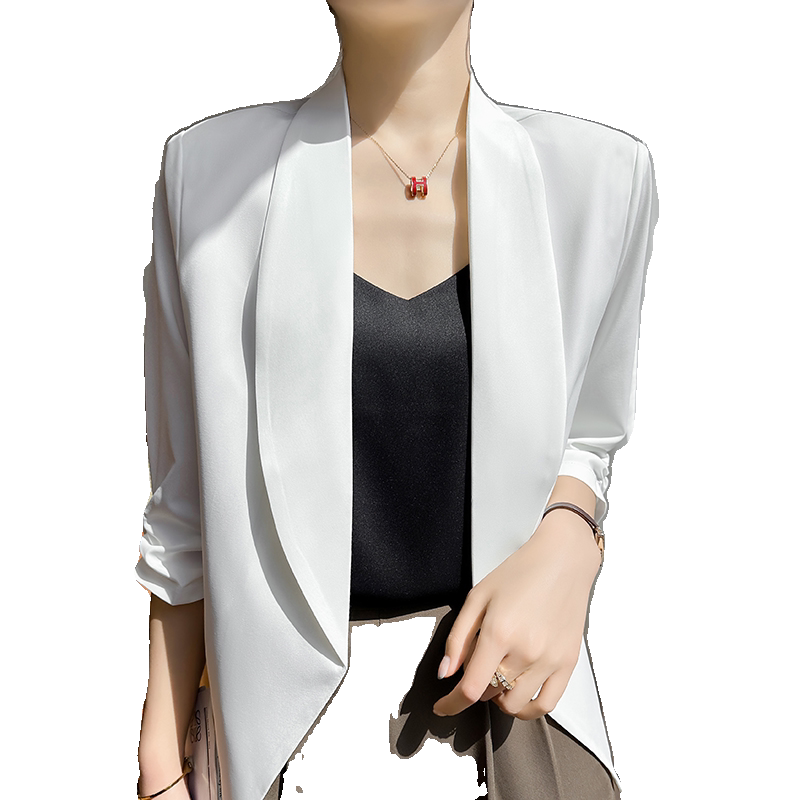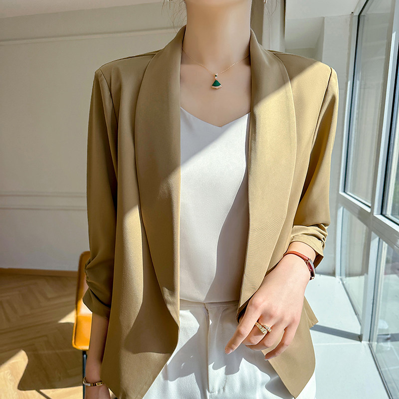 小个子休闲开衫 醋酸缎面小西装 2024新款 薄款 高级感西服 外套女夏季