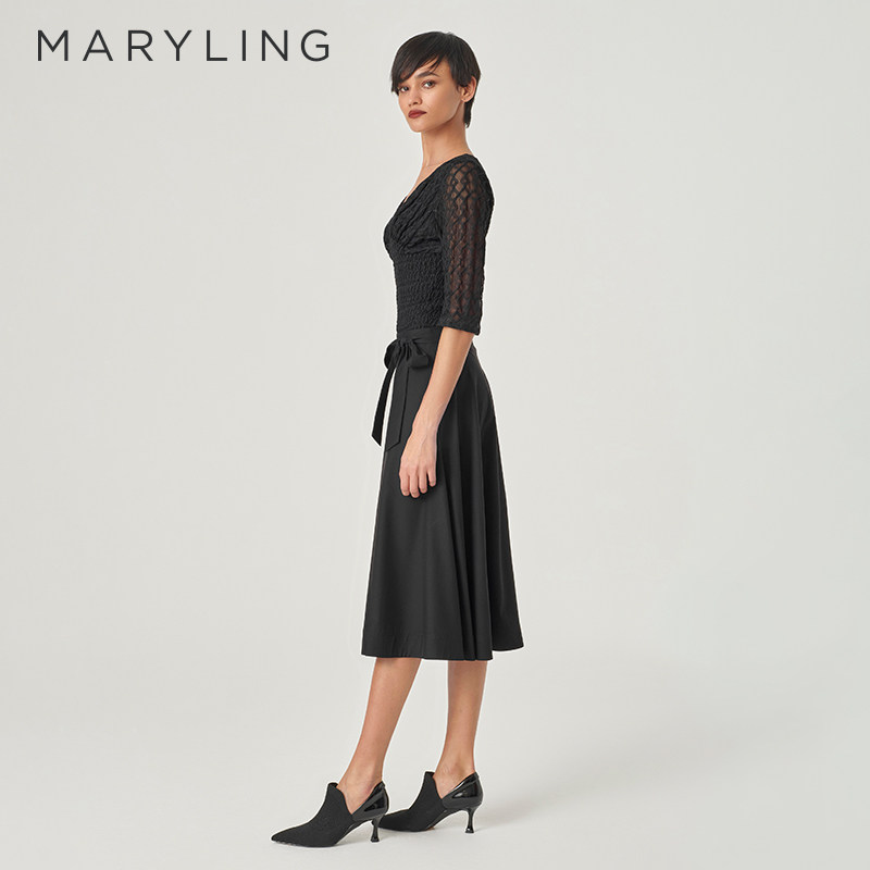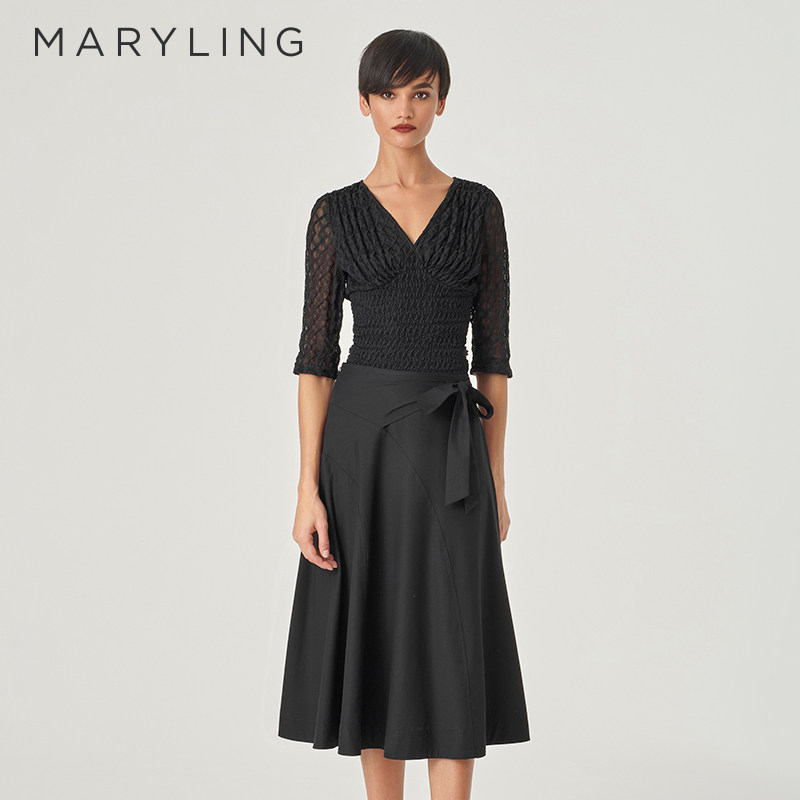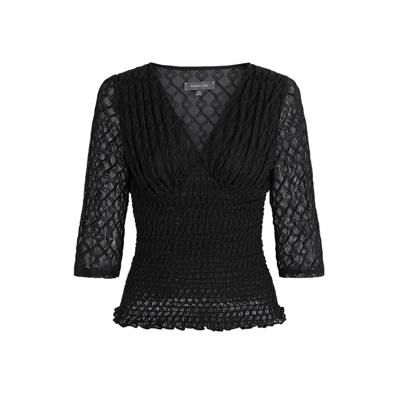 MARYLING玛俪琳夏季 黑色提花V领上衣A1ECW28210 新品