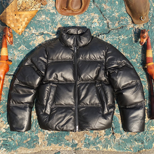 青年简约休闲运动皮夹克袁 短款 男士 真皮棒球服头层绵羊皮衣男修身