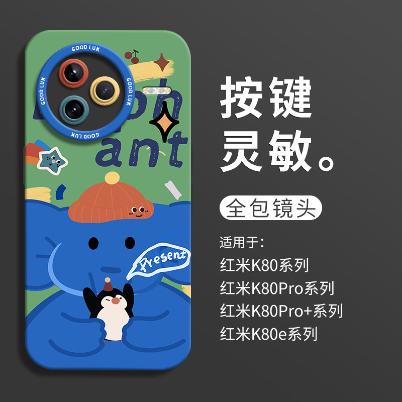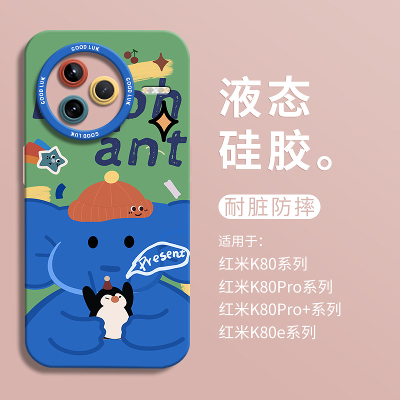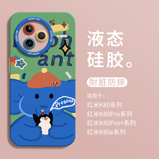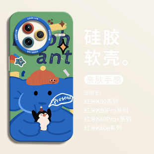 可爱红帽小蓝象适用小米红米k80瞳眼手机壳红米k80pro防摔Redmi k60 K80pro液态硅胶软壳男女k80卡通k70个性