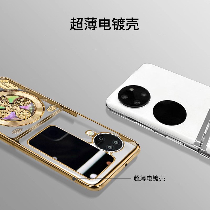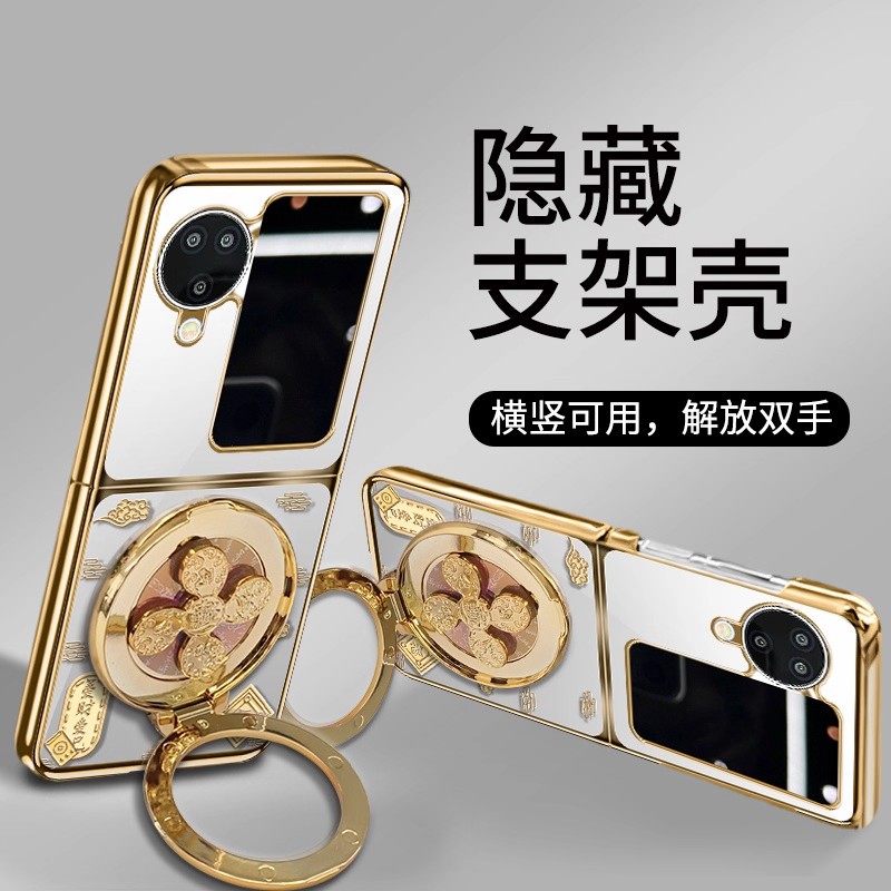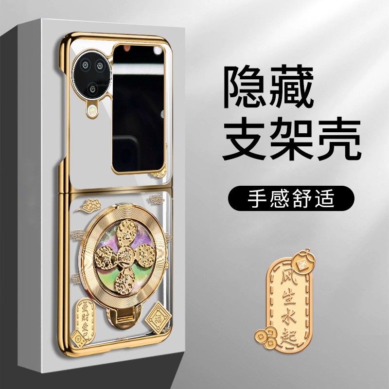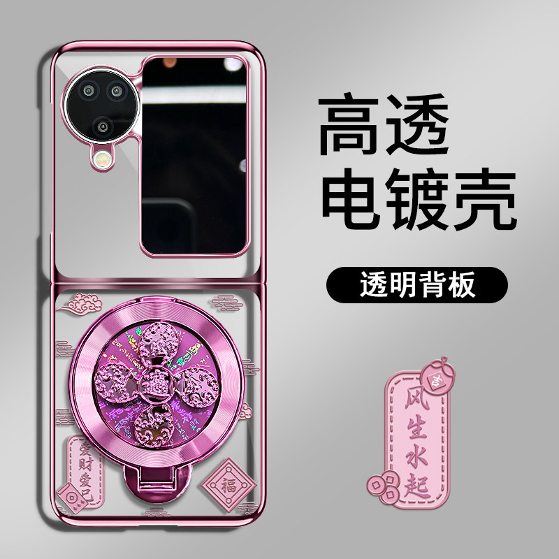 风生水起透明折叠电镀壳适用oppofindn3flip手机壳新款 findn2flip折叠屏全包防摔保护套n3男女简约带支架外壳