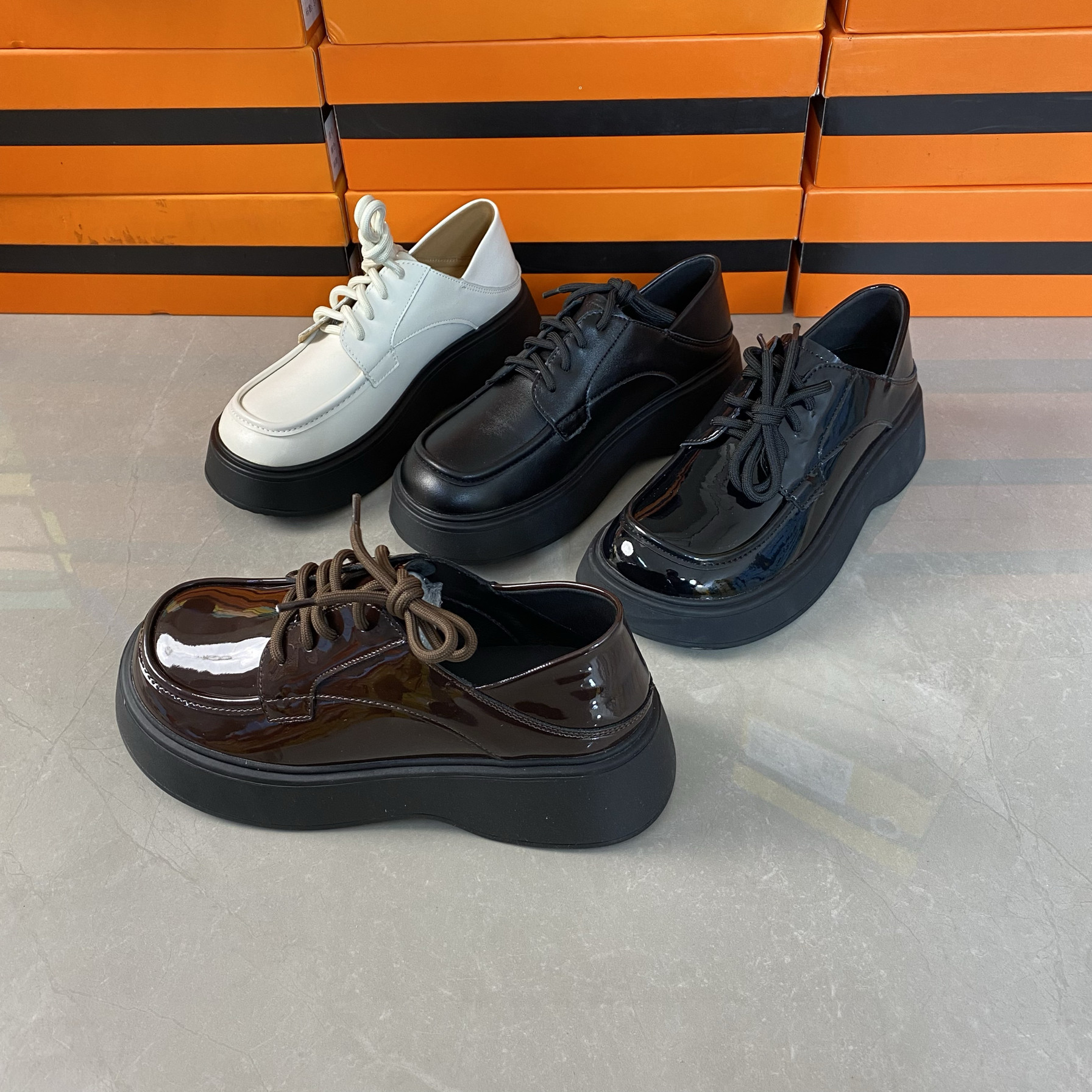 软皮小皮鞋 厚底乐福鞋 新款 舒适橡胶底增高鞋 英伦风复古时尚 断码