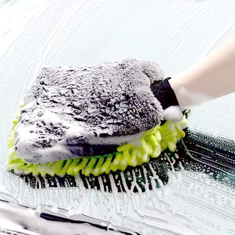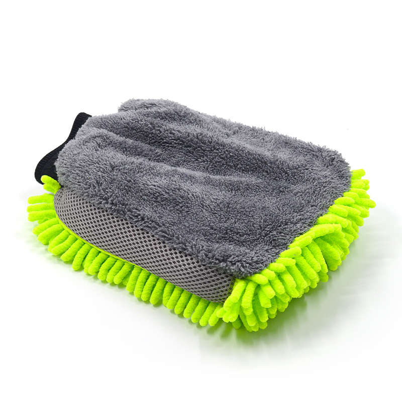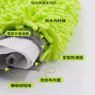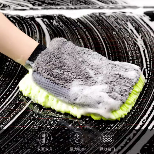 洗车手套雪尼尔珊瑚虫双面防水新车专用擦车抹布刷车手套毛绒熊掌