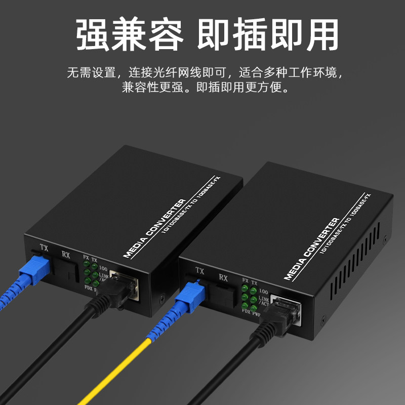 3100AB一对装 Haohanxin新款 迷你百兆光纤收发器单模单纤光电转换器HTB