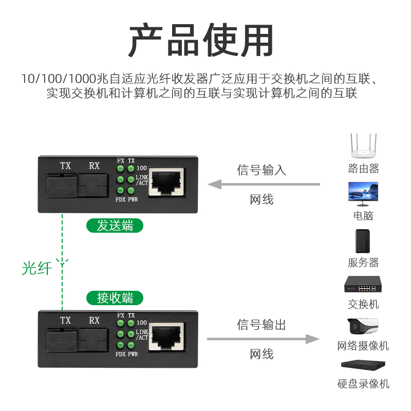 光纤收发器 千兆百兆单模单纤一对光收发收光器监控光线光仟光电转换器光端机网络光转电光千光钎