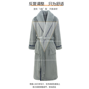 家居服男士 长款 浴袍 法兰绒加厚加绒冬珊瑚绒睡袍冬款 男新睡衣冬季