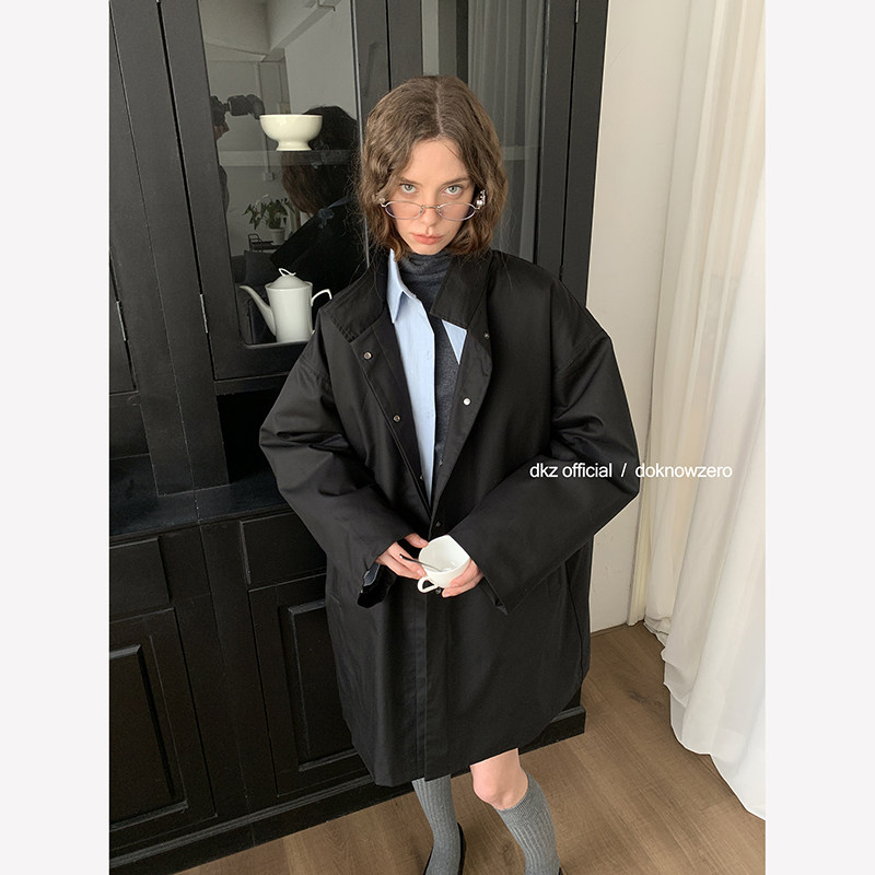 战壕大衣廓形英伦外套男秋 灰色巴尔玛肯风衣中长款 马登工装 德式