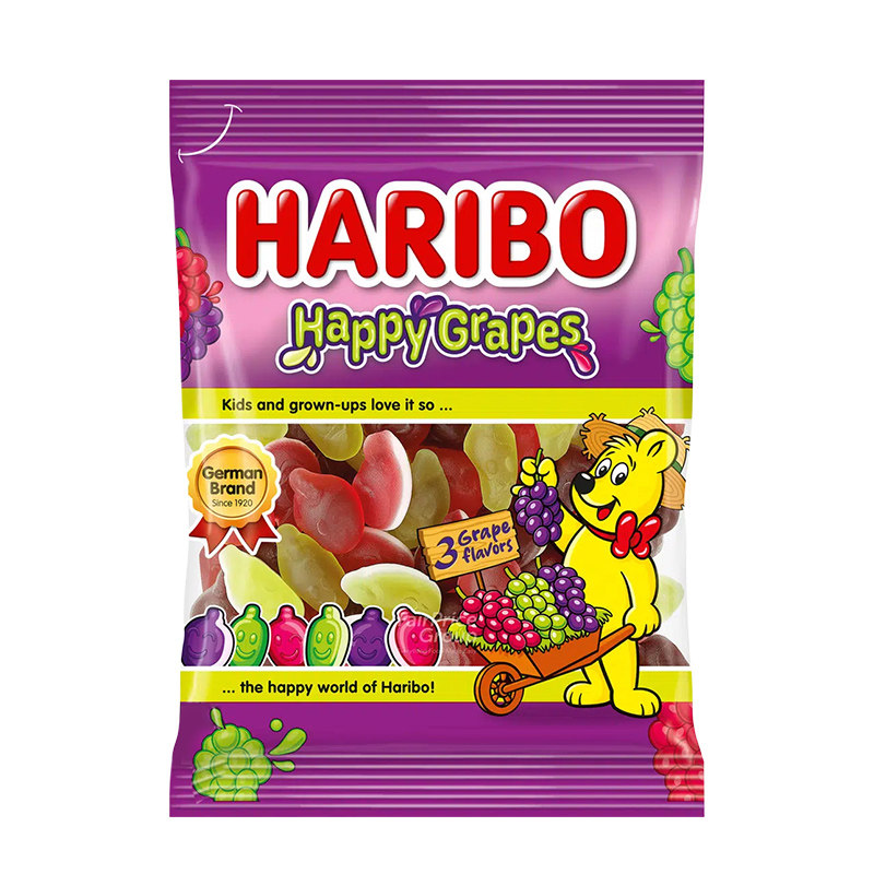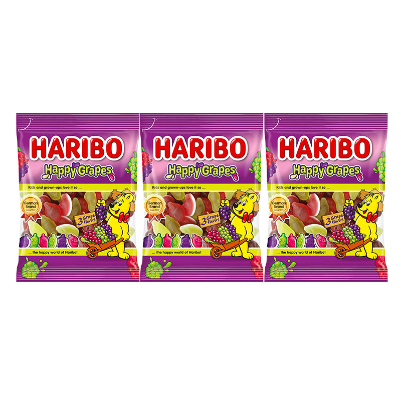 Haribo哈瑞宝快乐葡萄软糖80克 2袋果汁橡皮糖果儿童德国网红零食