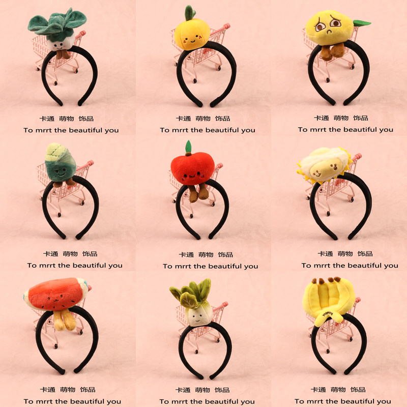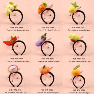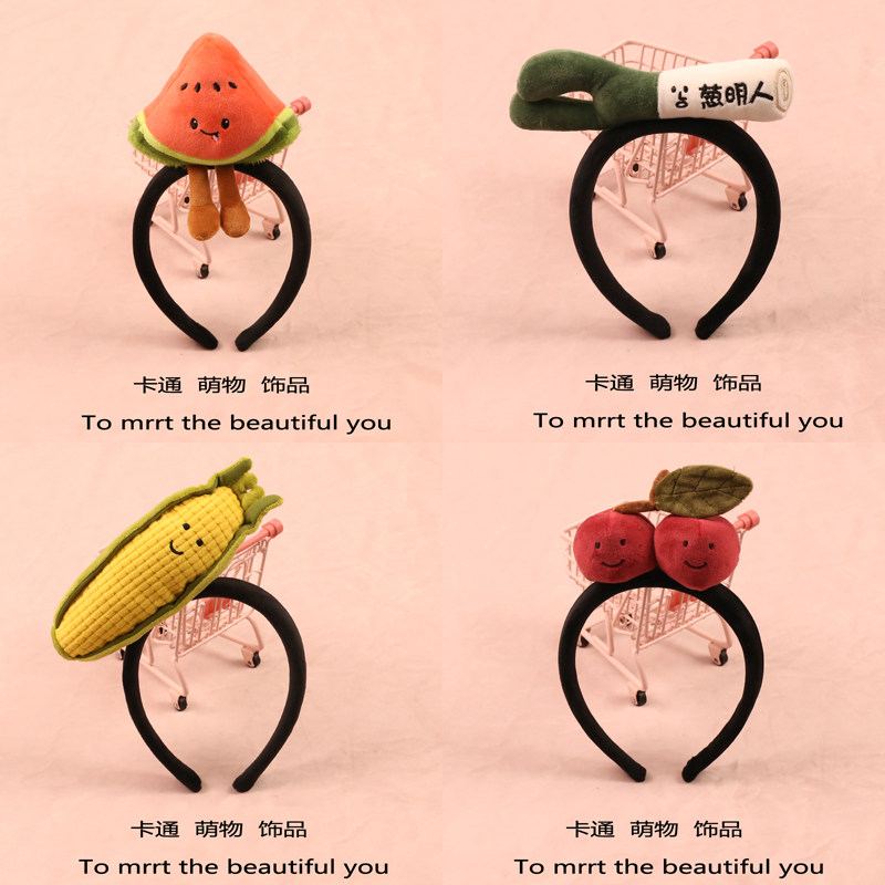 创意可爱蔬菜水果毛绒公仔发箍卡通玉米香蕉樱桃发卡拍照表演头饰