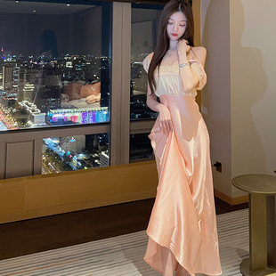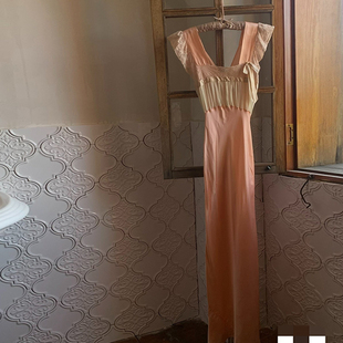 1930s 短 全网d家 长 三文鱼色气质裙 vintage连衣裙 Winema晓雪